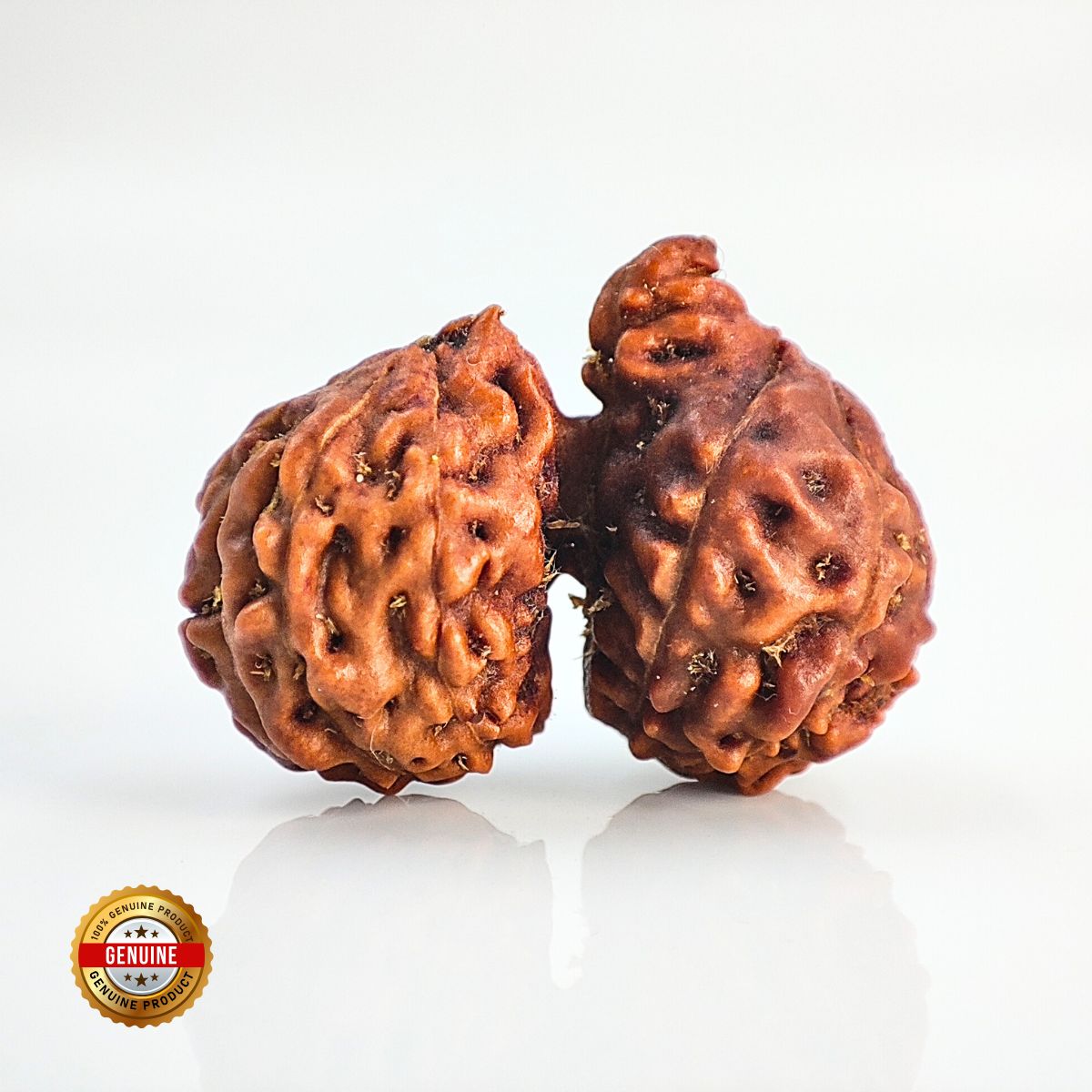 The bead displays deep grooves (mukhis) and a strong, unbroken connection between the two halves.