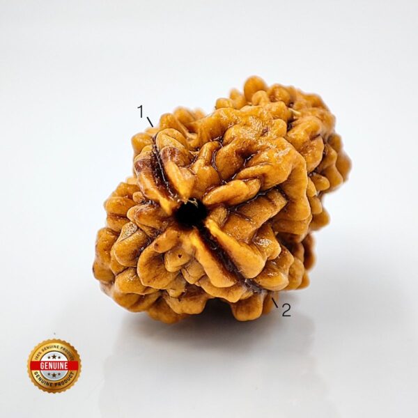 - Two distinct mukhis (faces) run vertically along the bead, creating a perfect symmetrical split.