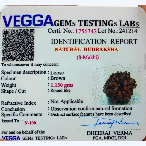 – **Lab Certification:** Genuine Nepali 8 Mukhi Rudraksha comes with a lab report verifying its authenticity, ensuring it is not counterfeit or artificially carved.