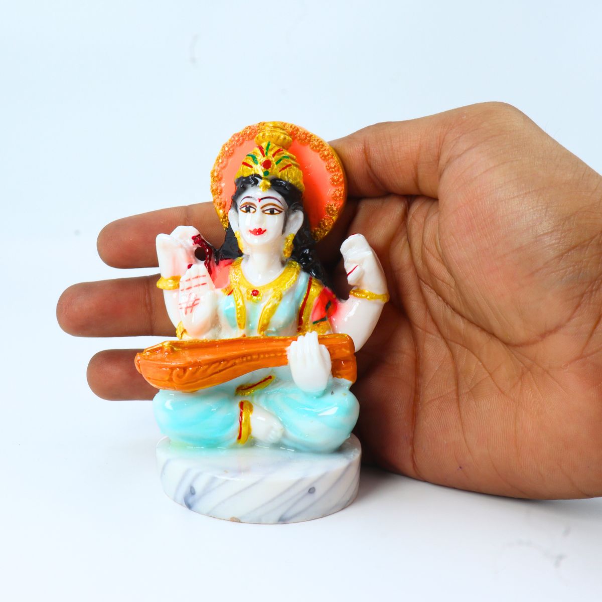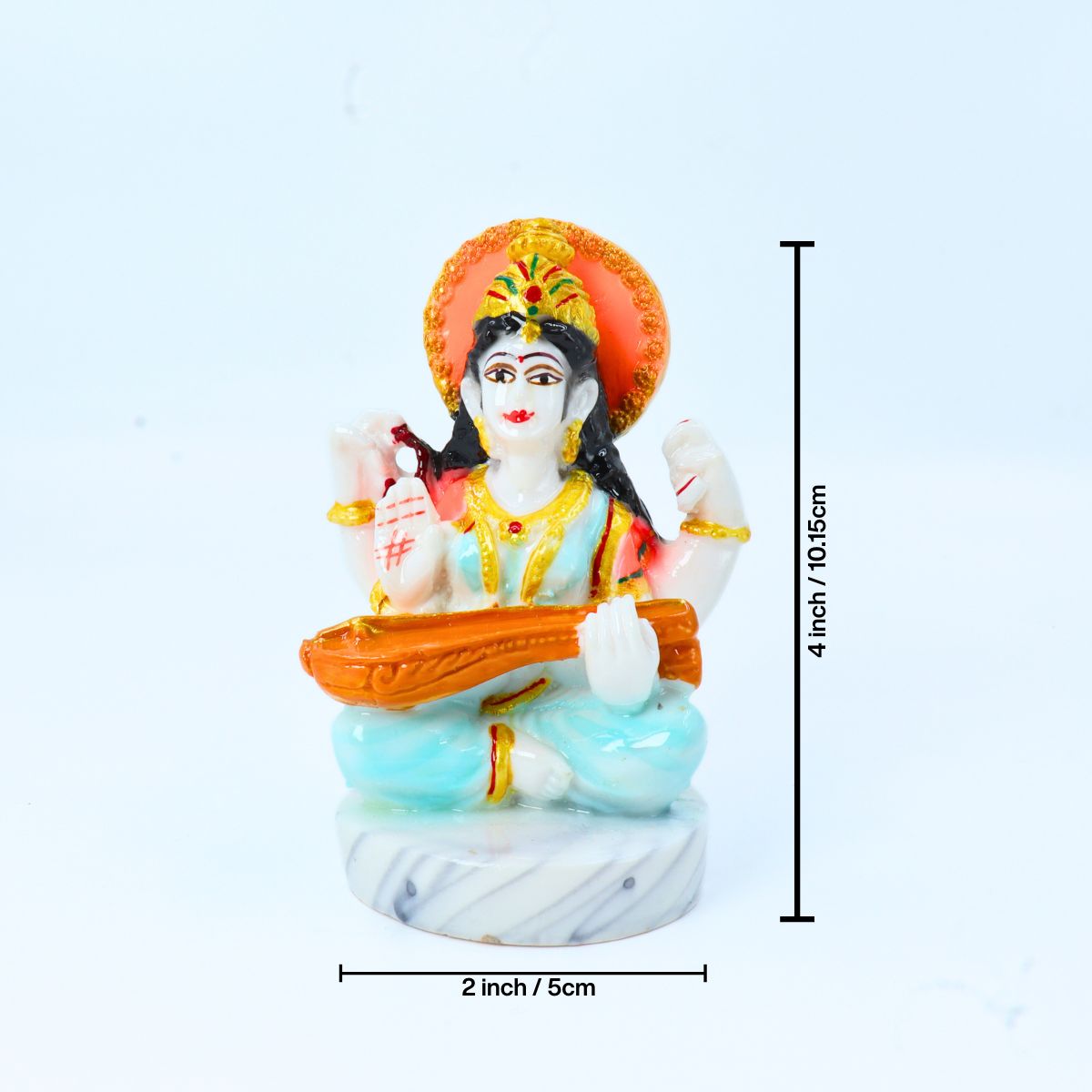 Saraswati Marble Dust Idol Colored Washable 4 Inch