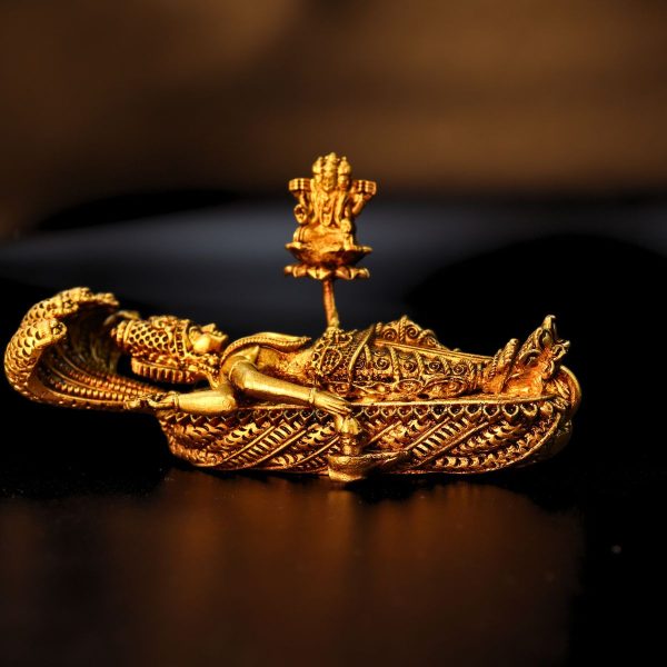 This small-sized brass statue is perfect for creating a sacred corner in your home, office, or meditation space. Whether you are a devout follower of Hinduism or simply appreciate the beauty of spiritual art, this Padamnabh Bhagwan with Brahma statue is sure to elevate the ambiance of any room.