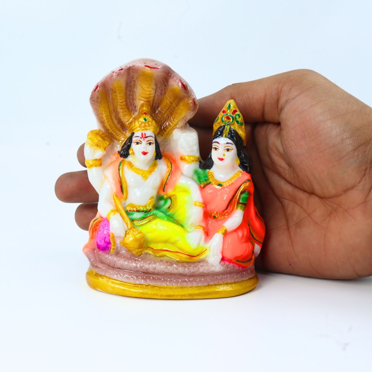 Vishnu Laxmi Marble Dust Idol Color Washable 4 Inch